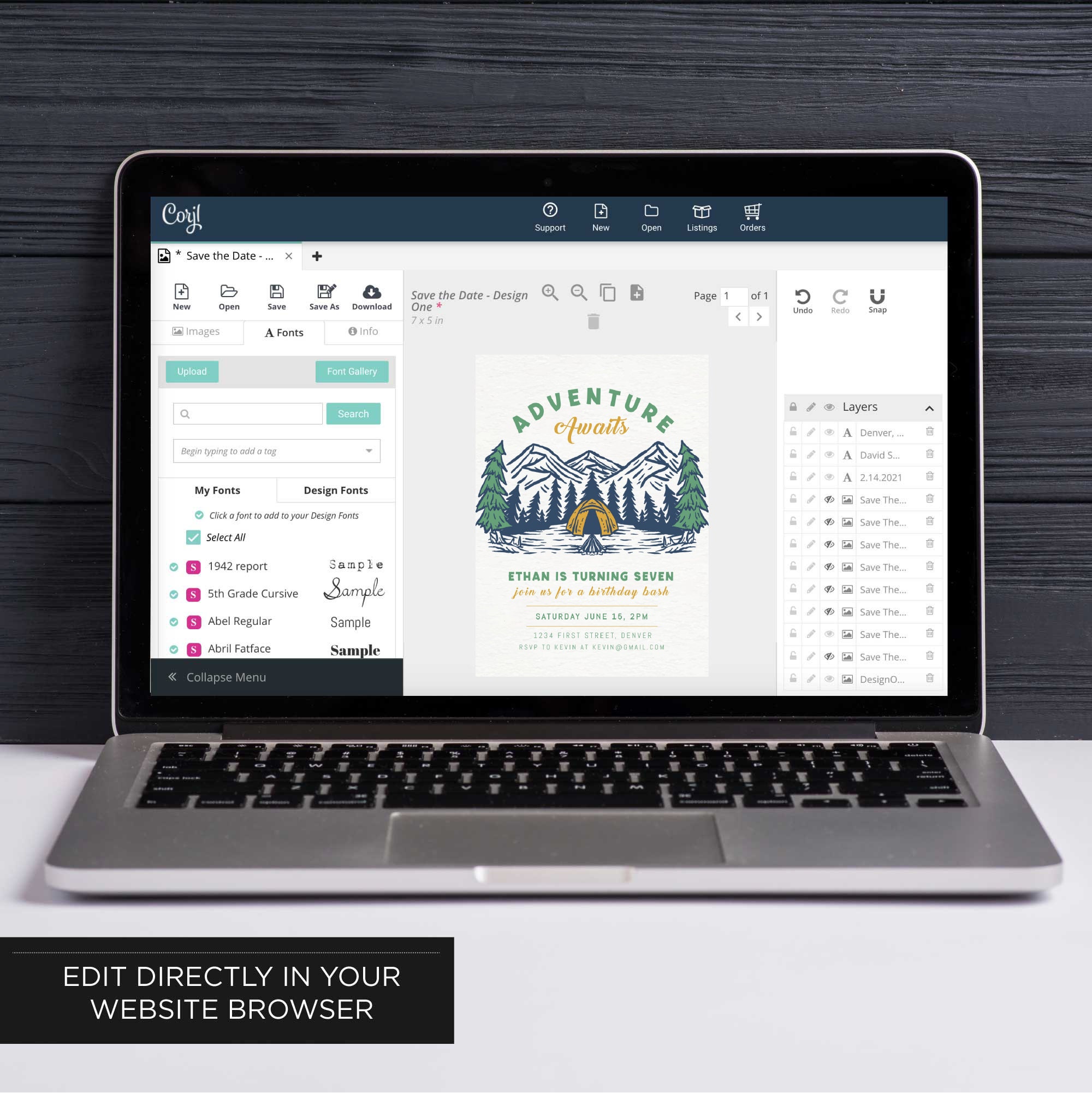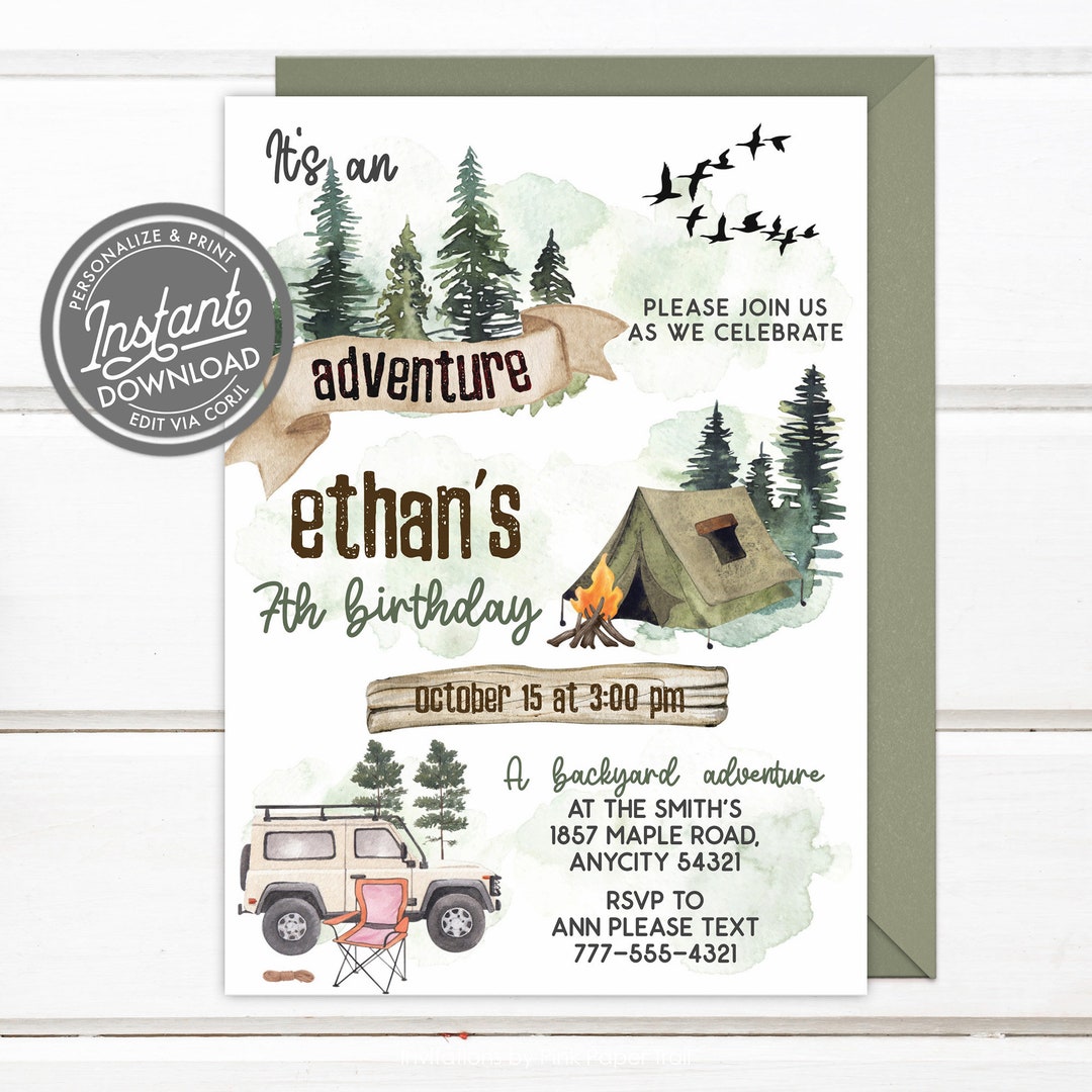 EDITABLE Outdoor Adventure Camping Nature Trail Birthday Invitation ...