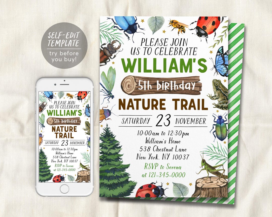 Nature Trail Birthday Invitation Editable Template, Outdoor Exploration ...