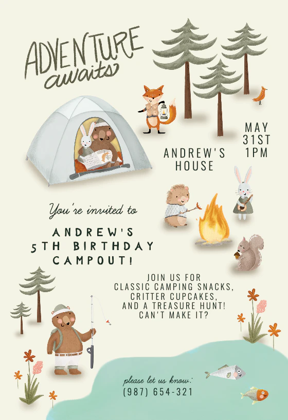 Adventure Awaits - Camping Theme Birthday Party Invitation Template ...