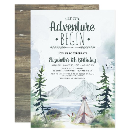 Let The Adventure Begin Mountains Camping Birthday Invitation | Zazzle.com