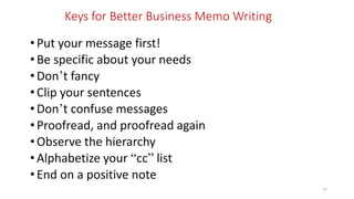 Key Takeaways For Writing Business Email Letters And Memos Training Ppt ...