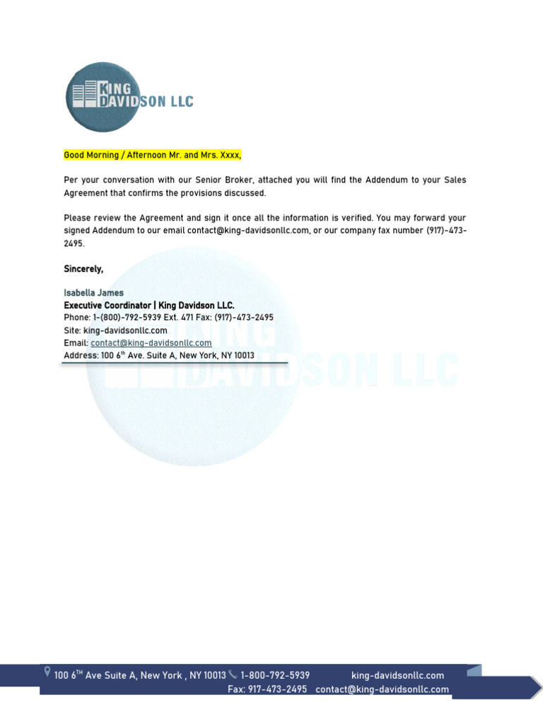 Addendum Email Sample - Fill Online, Printable, Fillable, Blank | pdfFiller