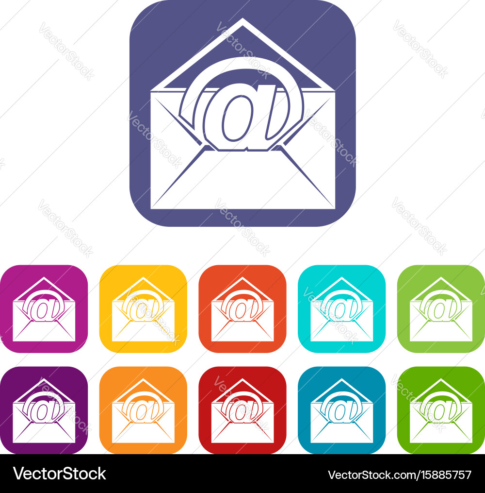 Envelope with email sign icons set flat Royalty Free Vector