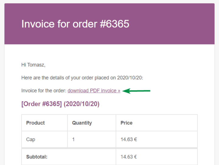 Send a custom email with an invoice in WooCommerce (WordPress plugin)