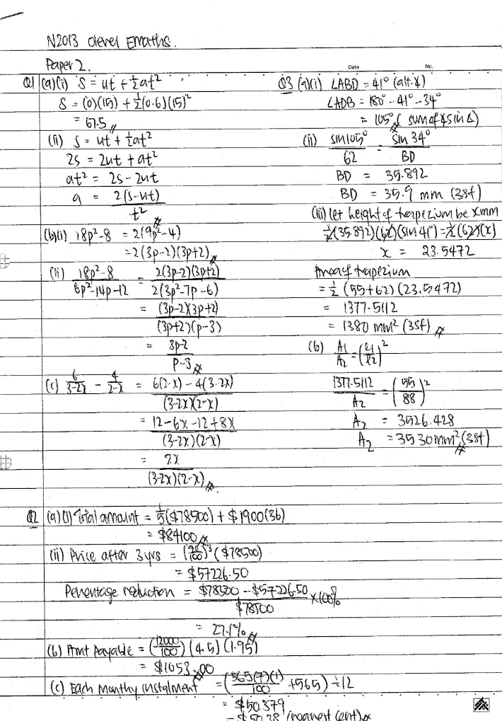 msyw: 2013 4016 Elementary Mathematics Emath Paper 2 Suggested Solutions