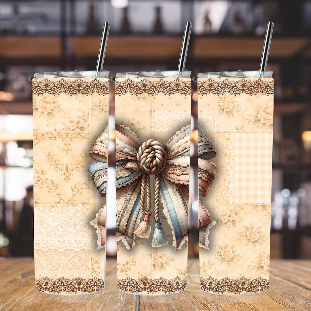 Western Lace Rustic Robe Coquette Bow 20oz Tumbler Wrap, Western Floral ...