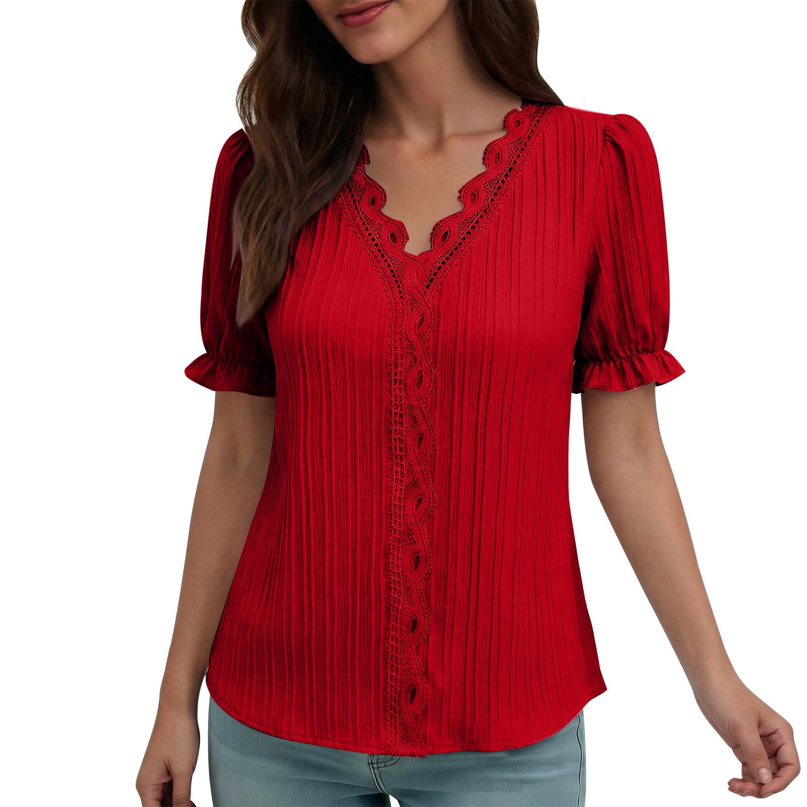 Aeguzox Womens Tops Draping Lace Trim Texture V-Neck Wave Design Puff ...