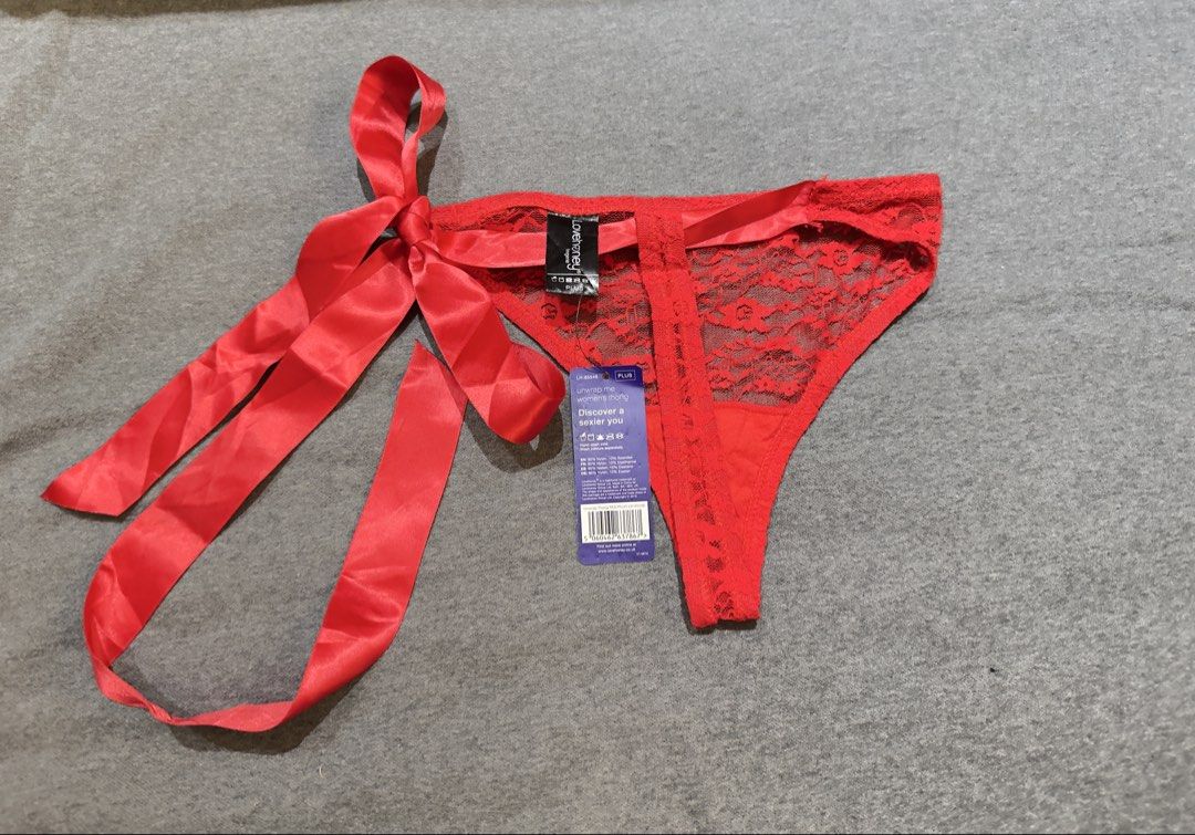 Red Lace Thong with Ribbon one size, Women's Fashion, Undergarments ...
