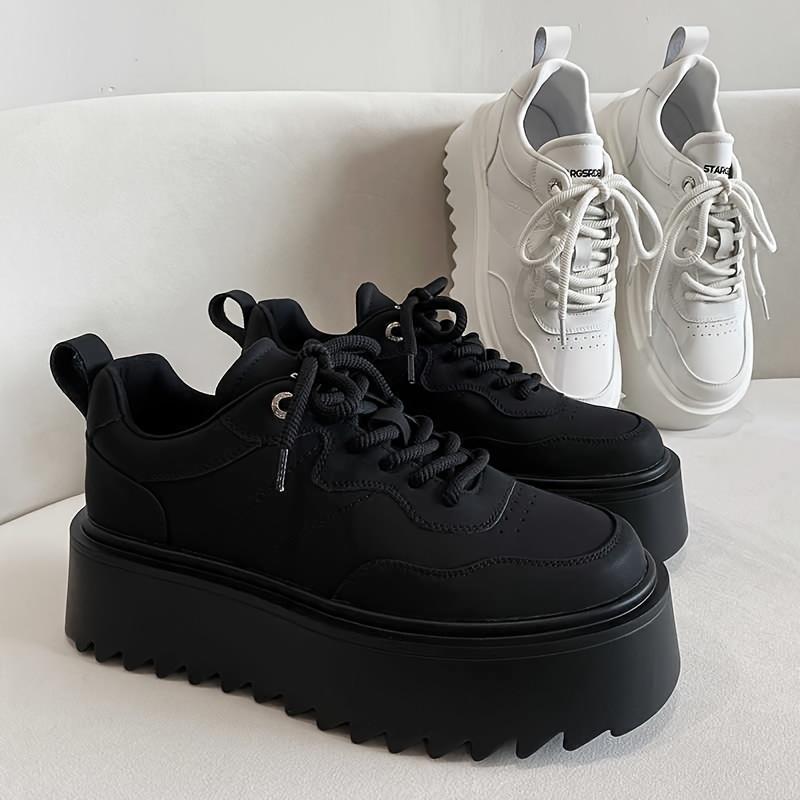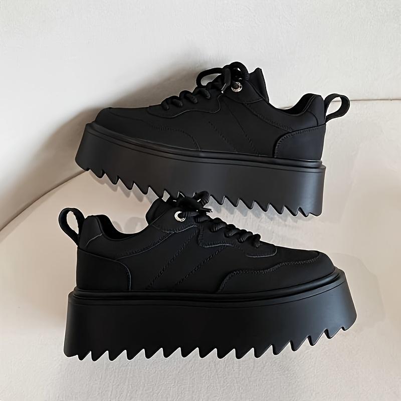 [Trendy Comfort Sneakers] Stylish Black Thick Sole Comfort Sneakers ...