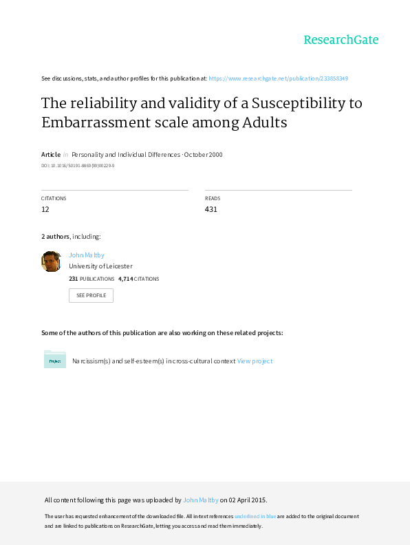 (PDF) The reliability and validity of a susceptibility to embarrassment ...