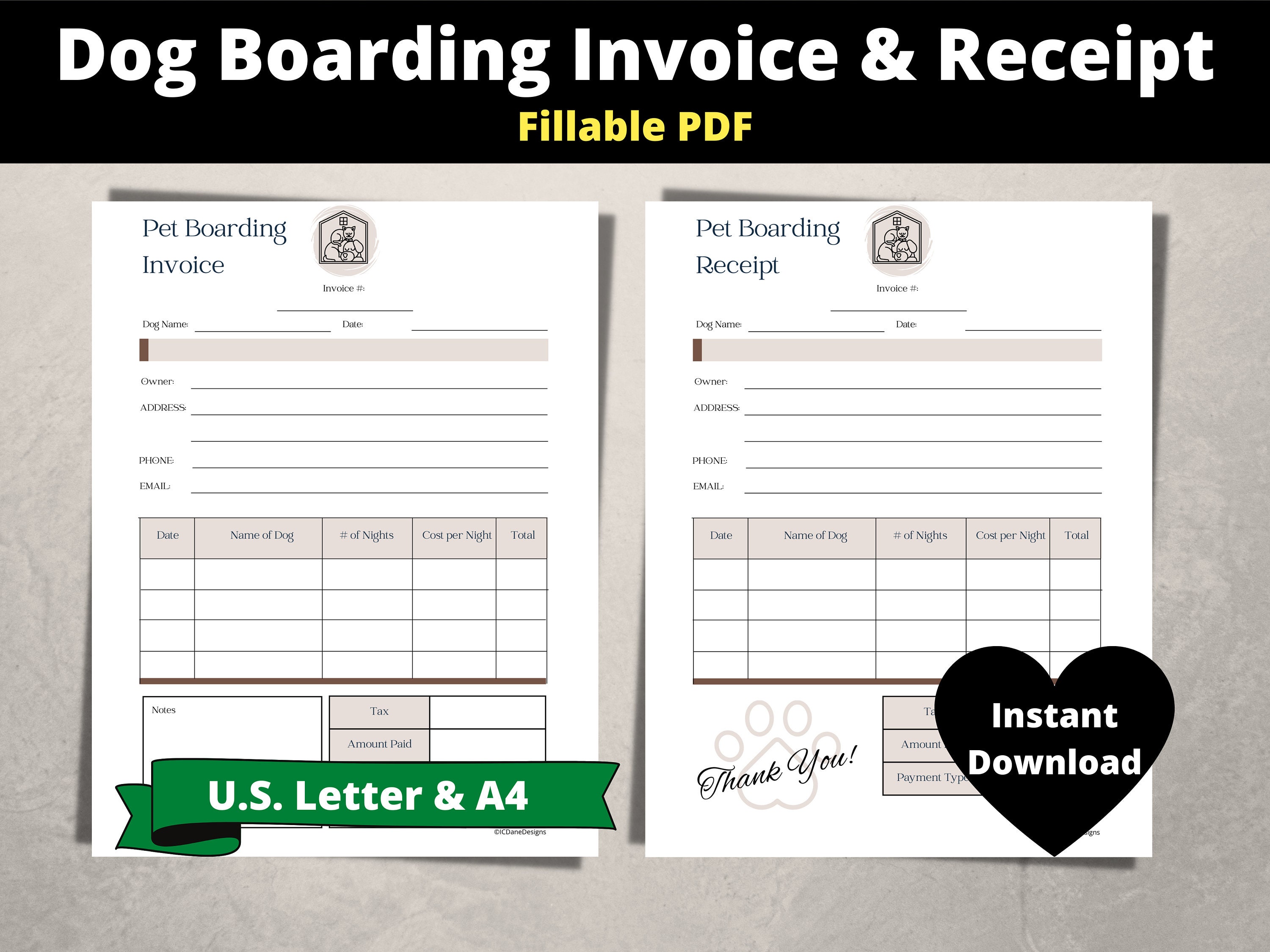 Dog Boarding Invoice, Dog Boarding Receipt Editable PDF D001 - Etsy