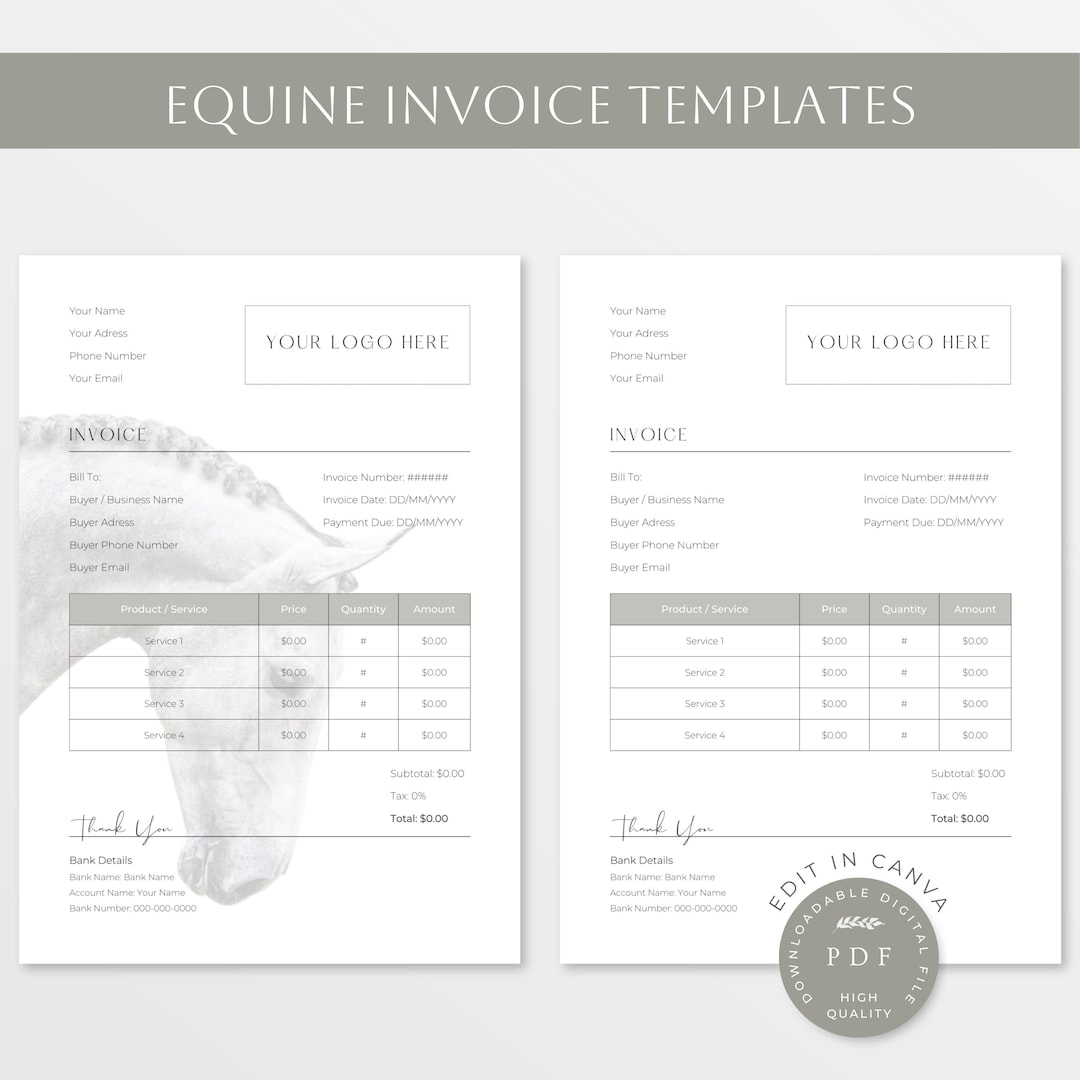 Equine Invoice Template | Minimalist Horse Invoice | Professional ...