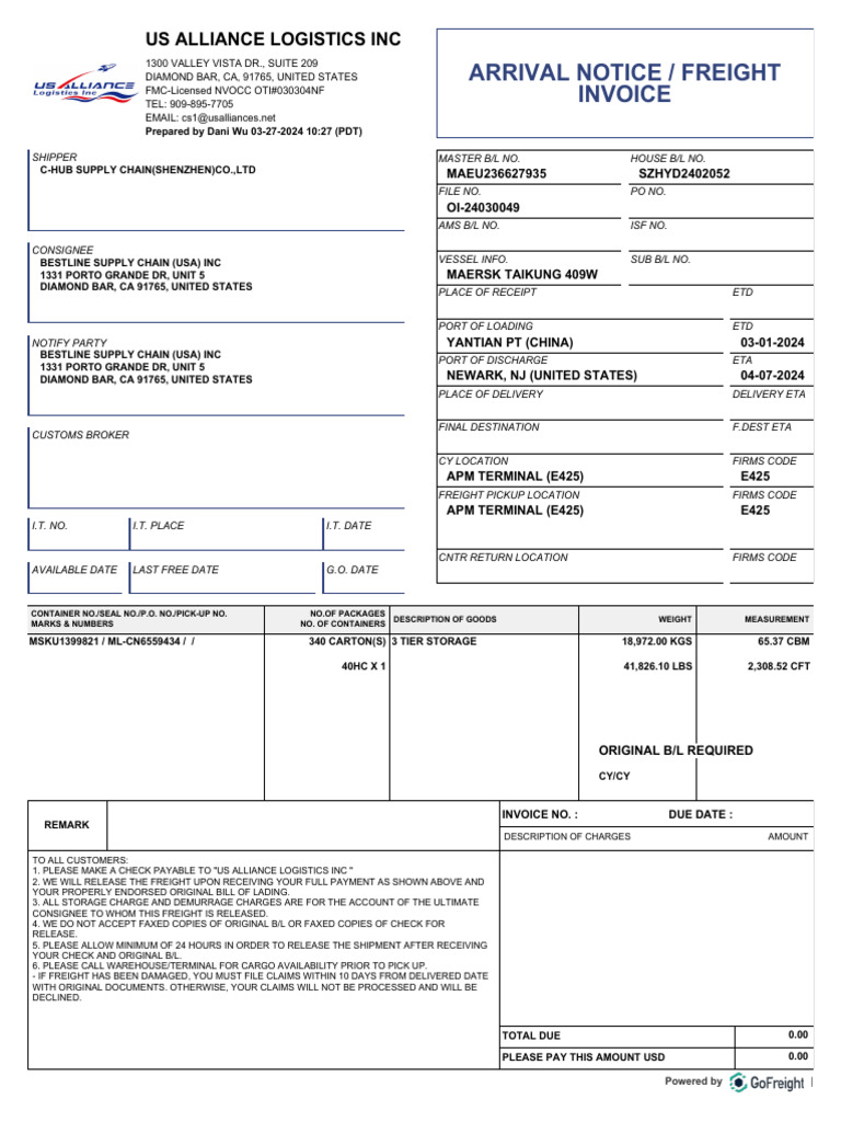 Freight Invoice for Supply Chain | PDF | Cargo | Freight Transport