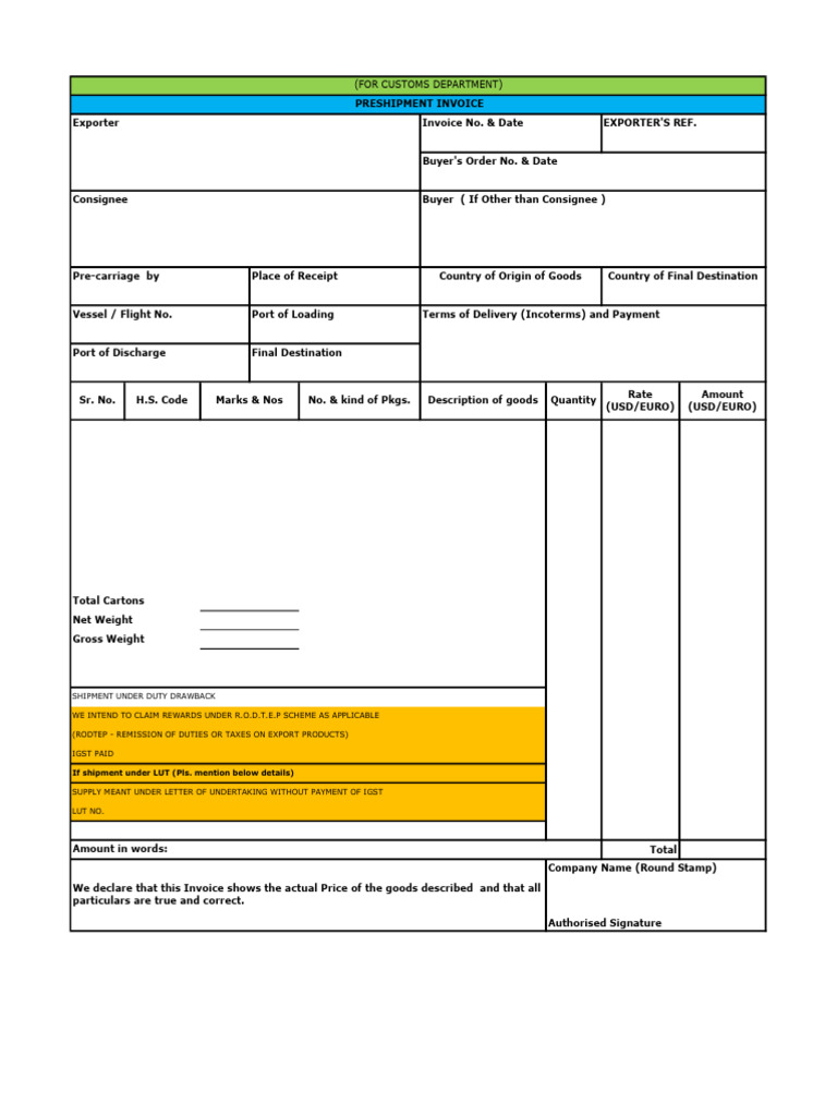 Preshipment Custom Invoice | PDF