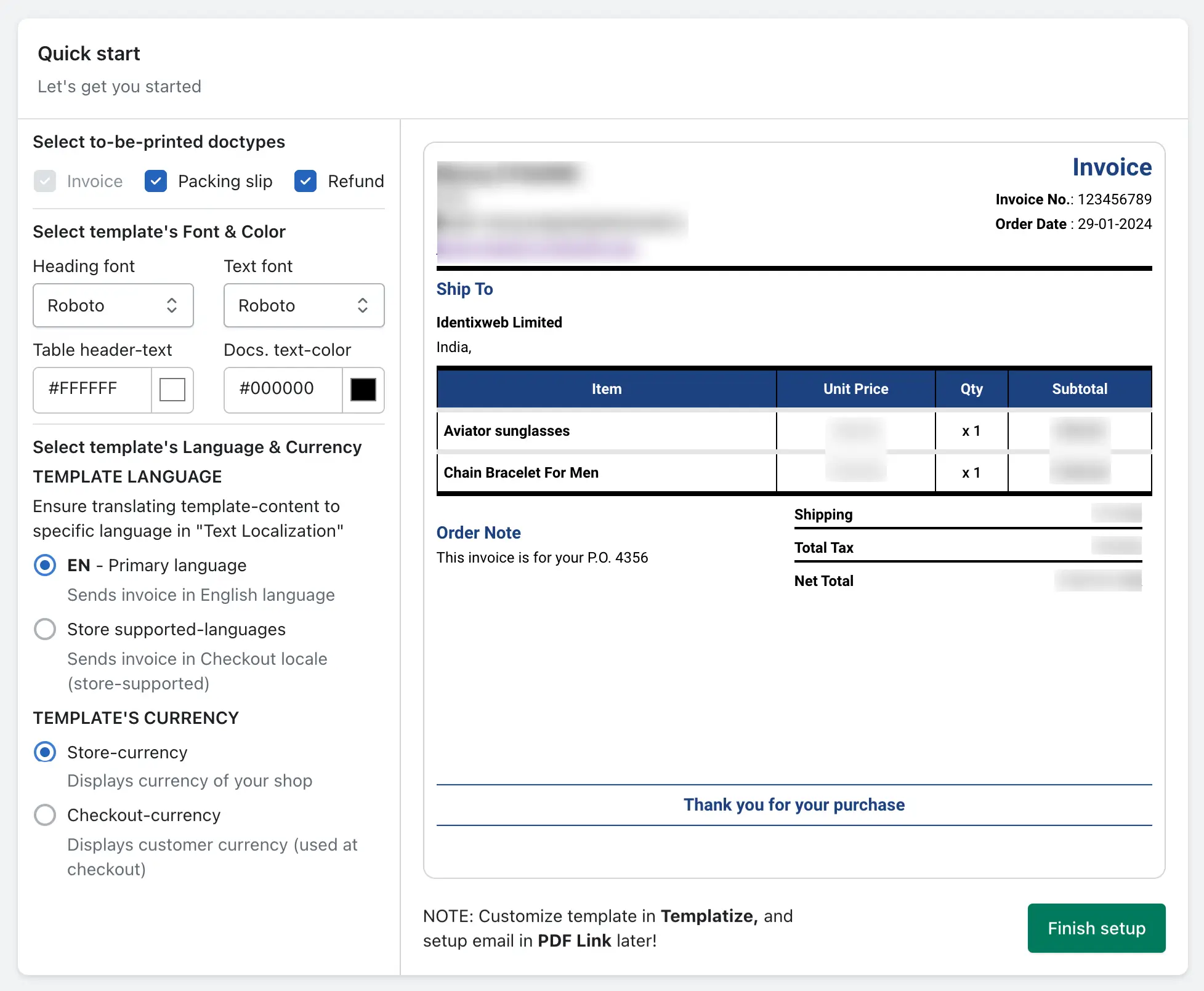 Onboarding Process of Order Printer PDF Invoice Shopify App