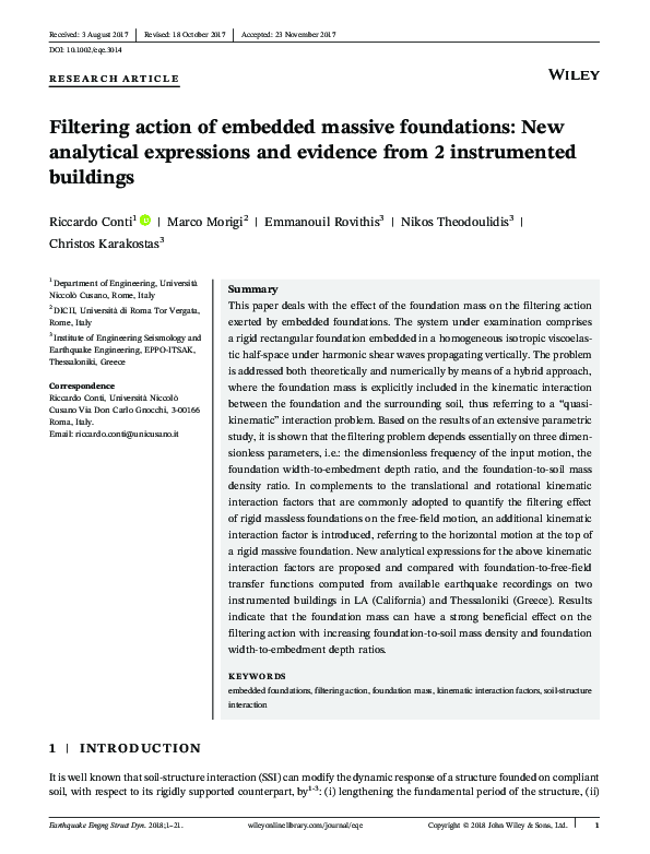 (PDF) Filtering action of embedded massive foundations: New analytical ...