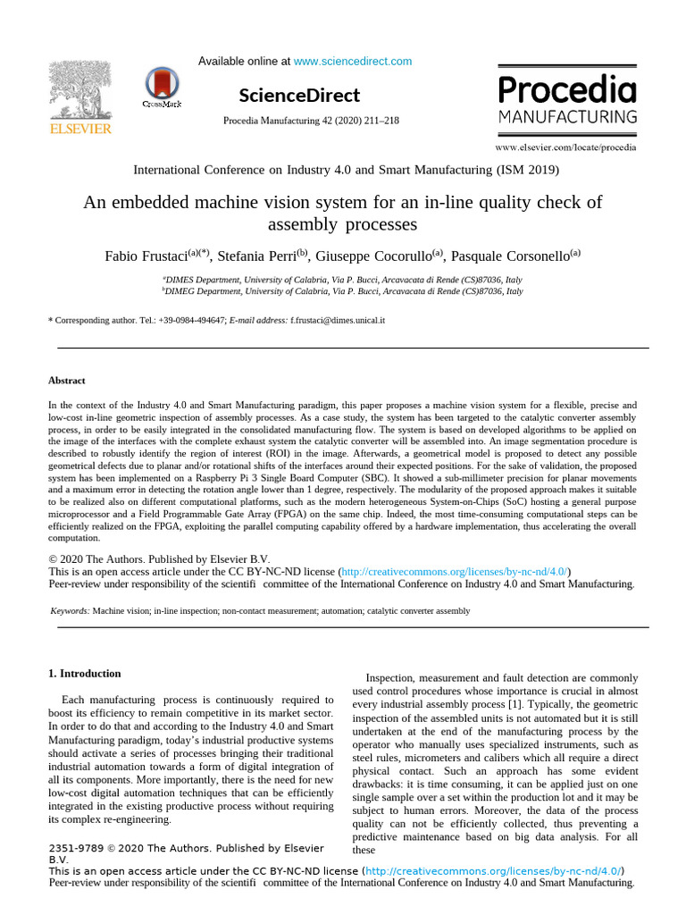 An Embedded Machine Vision System For An in Line Quality - 2020 ...