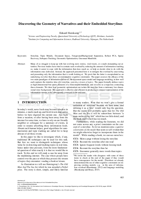 (PDF) Discovering the Geometry of Narratives and their Embedded Storylines