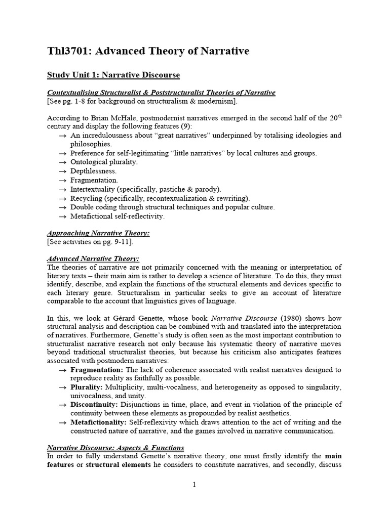 Advanced Theory of Narrative - Study Guide Summary | PDF | Narrative ...