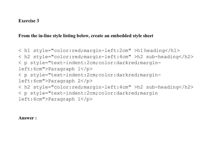 Solved embedded cascade style sheet. Note the difference | Chegg.com