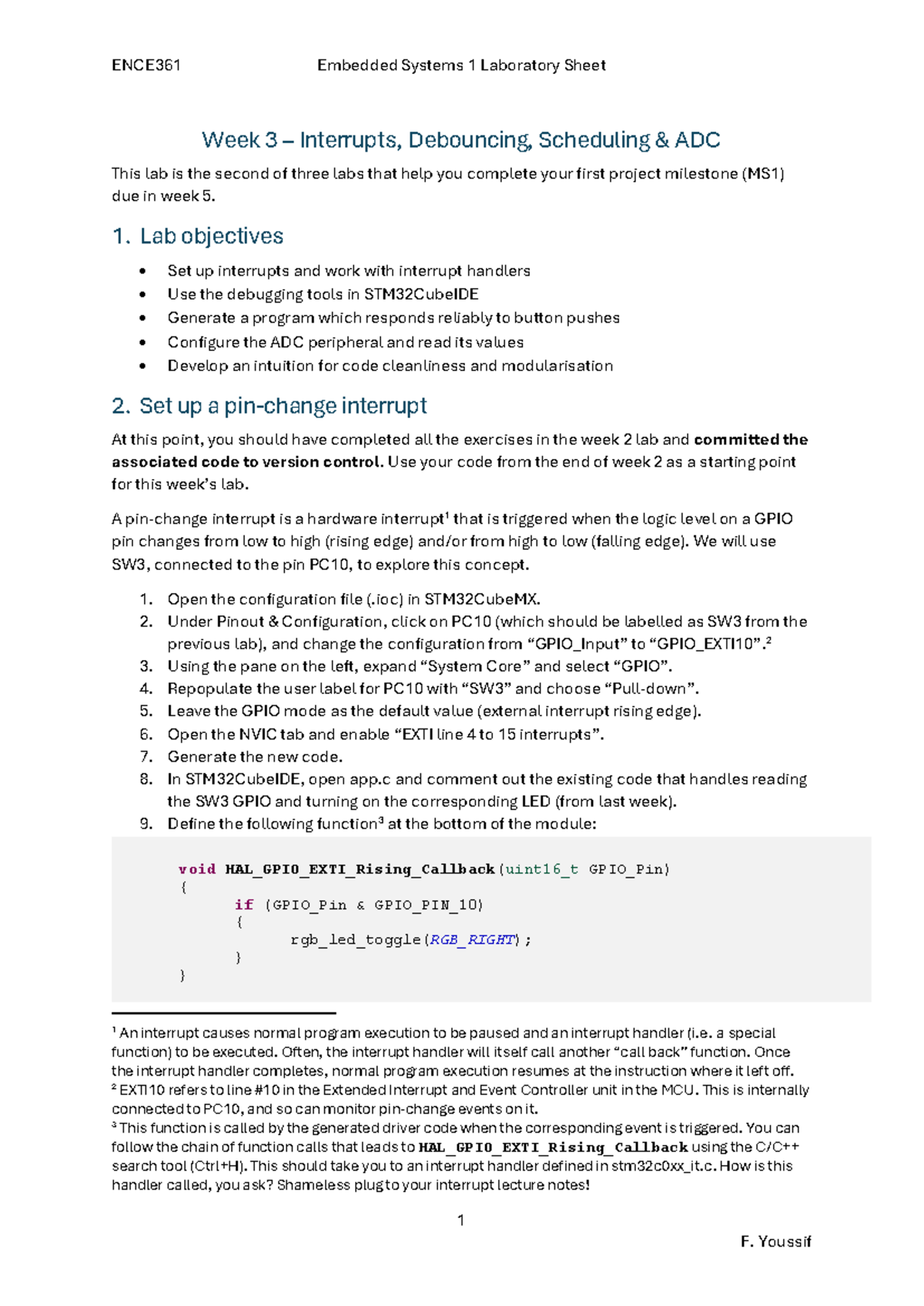 ENCE361 Embedded Systems 1 Lab Sheet: Week 3 - Interrupts & ADC - Studocu