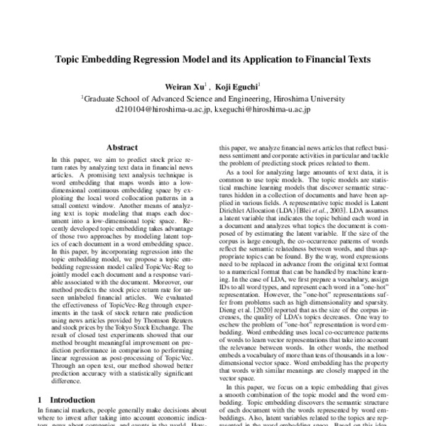 Topic Embedding Regression Model and its Application to Financial Texts ...