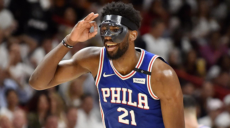 Joel Embiid scores 34 points while wearing protective mask to lift ...