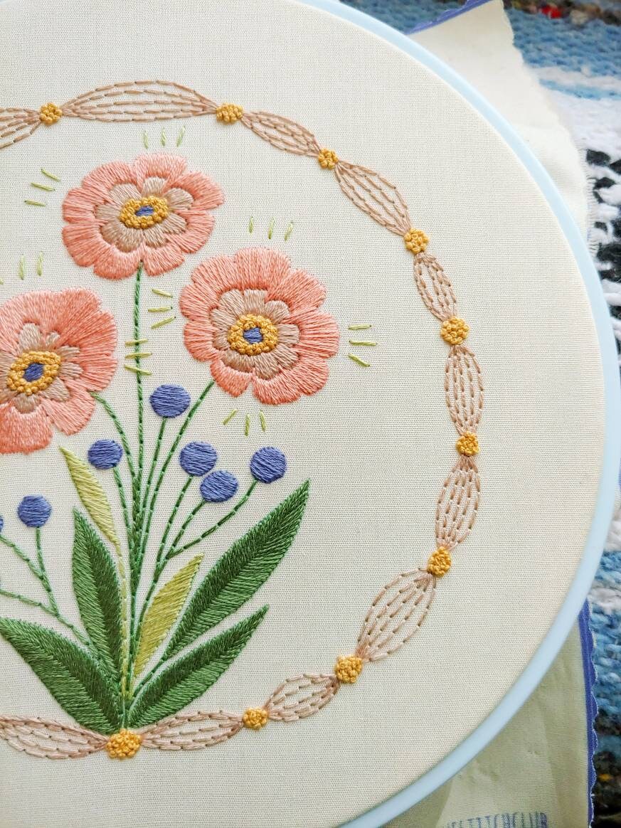 Blush Blooms Floral Embroidery Pattern Embroidery Hoop Art - Etsy