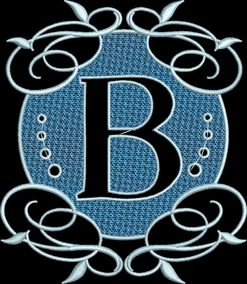 Embossed Alphabet Embroidery Design A-Z, Ornamental Monogram Font ...