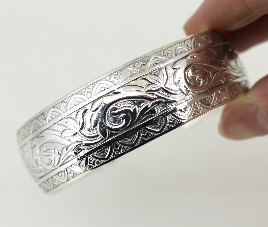 Vintage Embossed Scroll Filigree Design Cuff Bracelet 925 Sterling ...