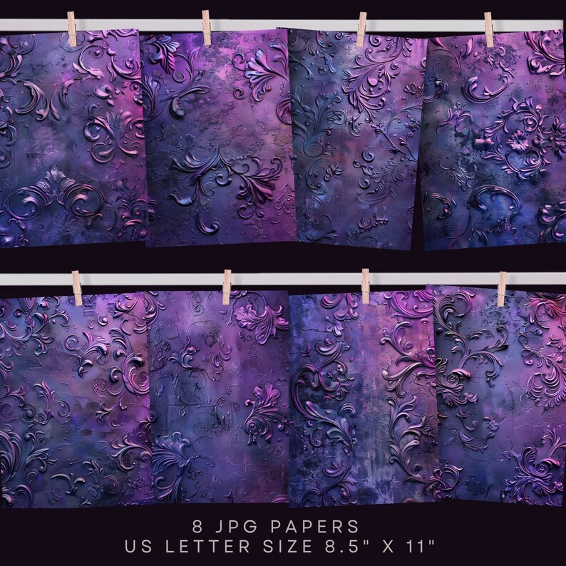 Purple Embossed Filigree Textures, Decorated Wall Background, Digital ...