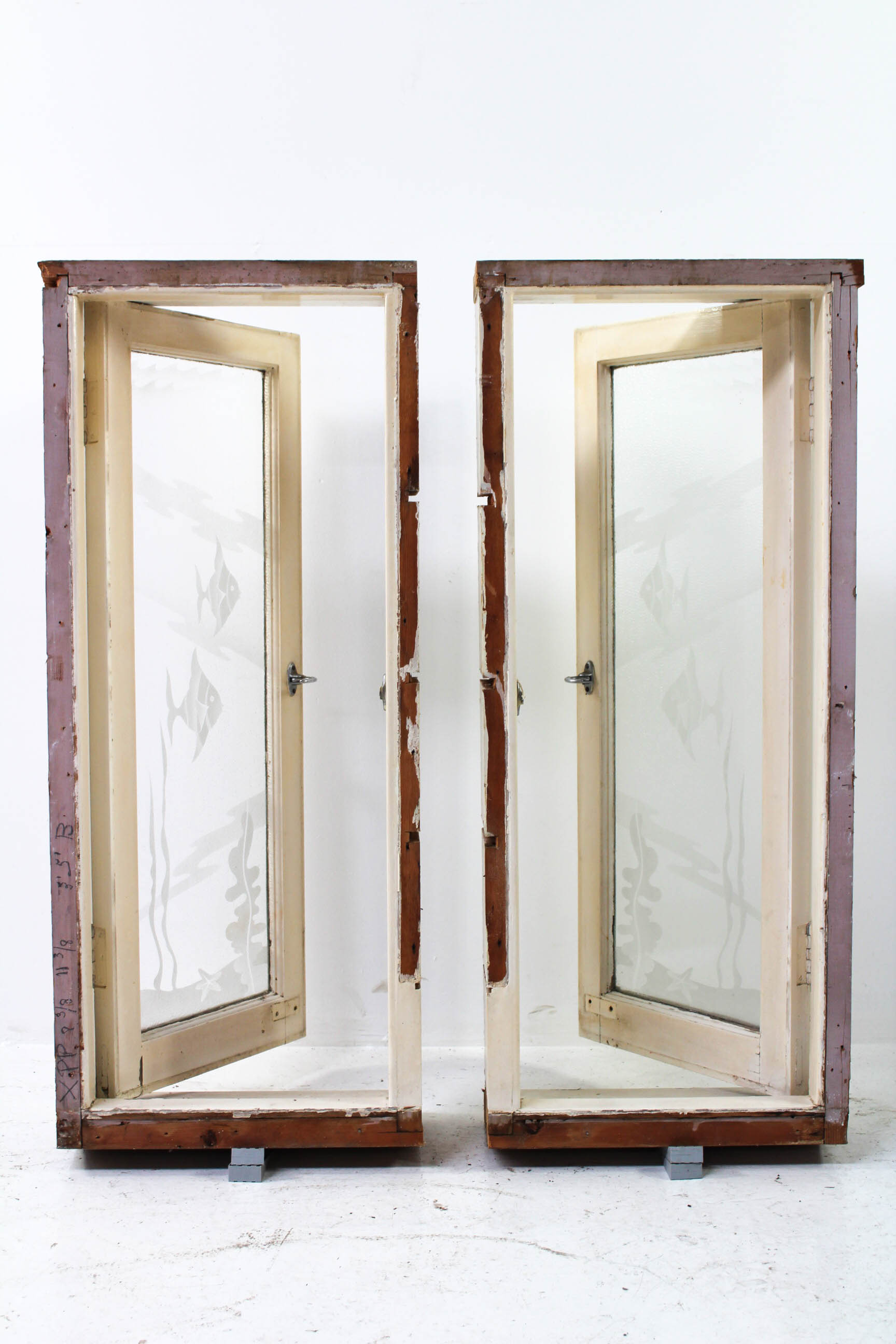 Pair of Large Double Pane Etched Glass Windows, Etching Goes Around the ...