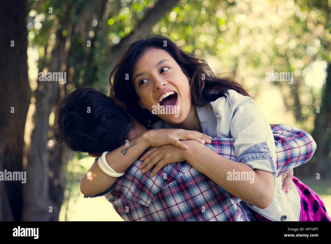 Happy young couple hugs outside hi-res stock photography and images - Alamy