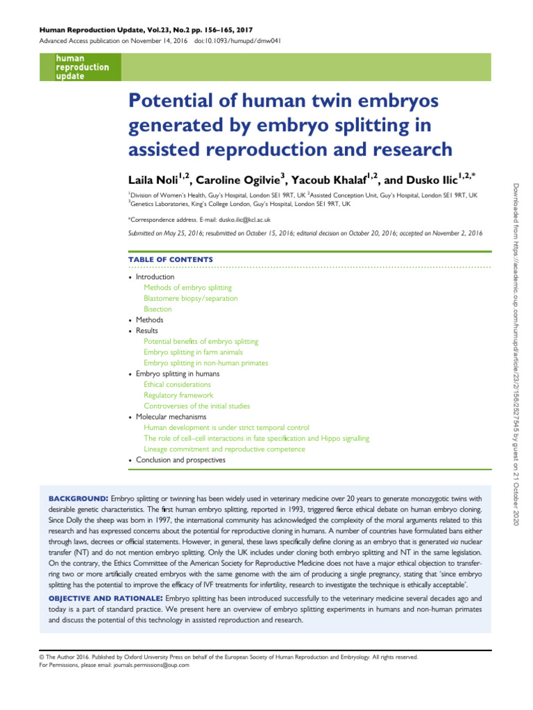 (PDF) Embryo splitting