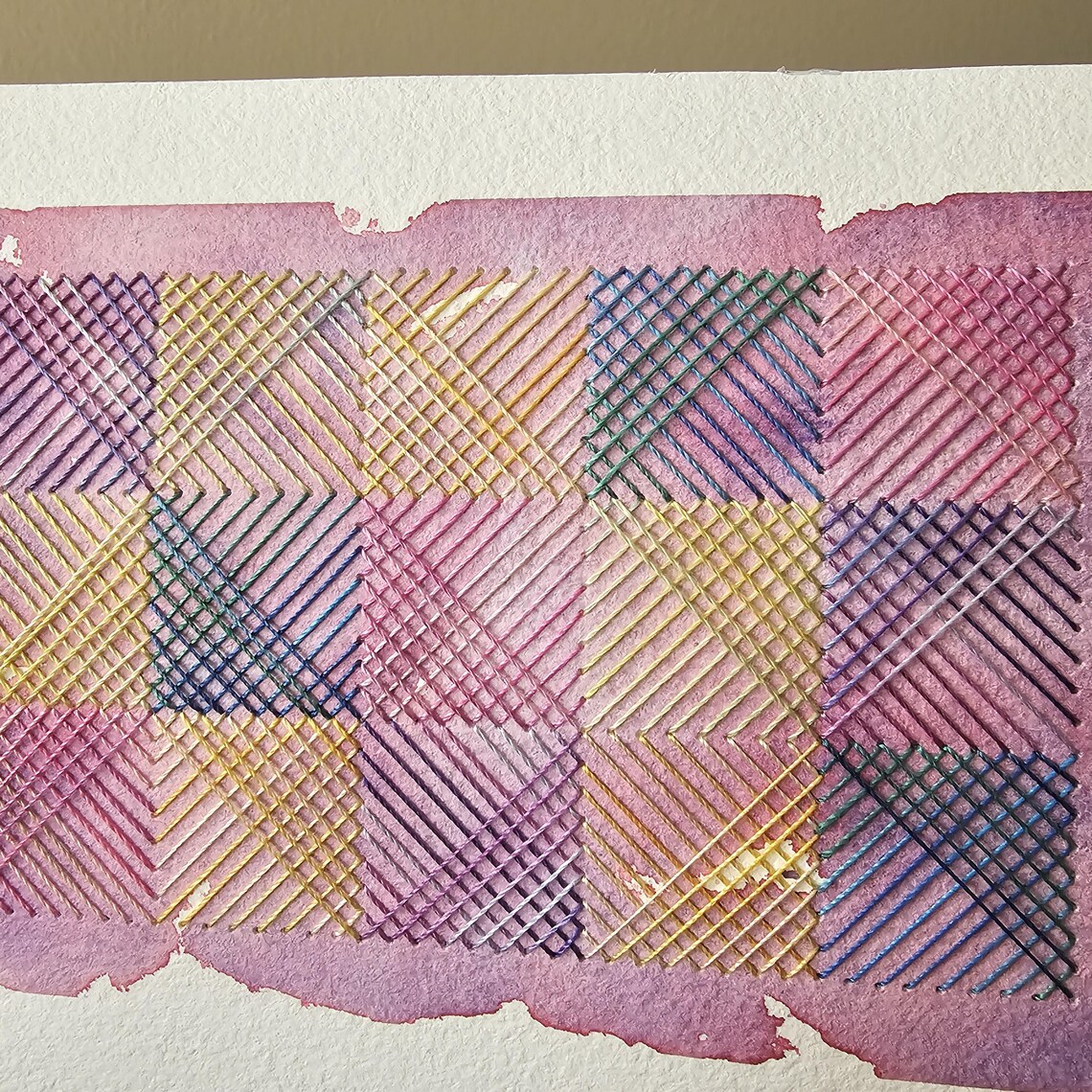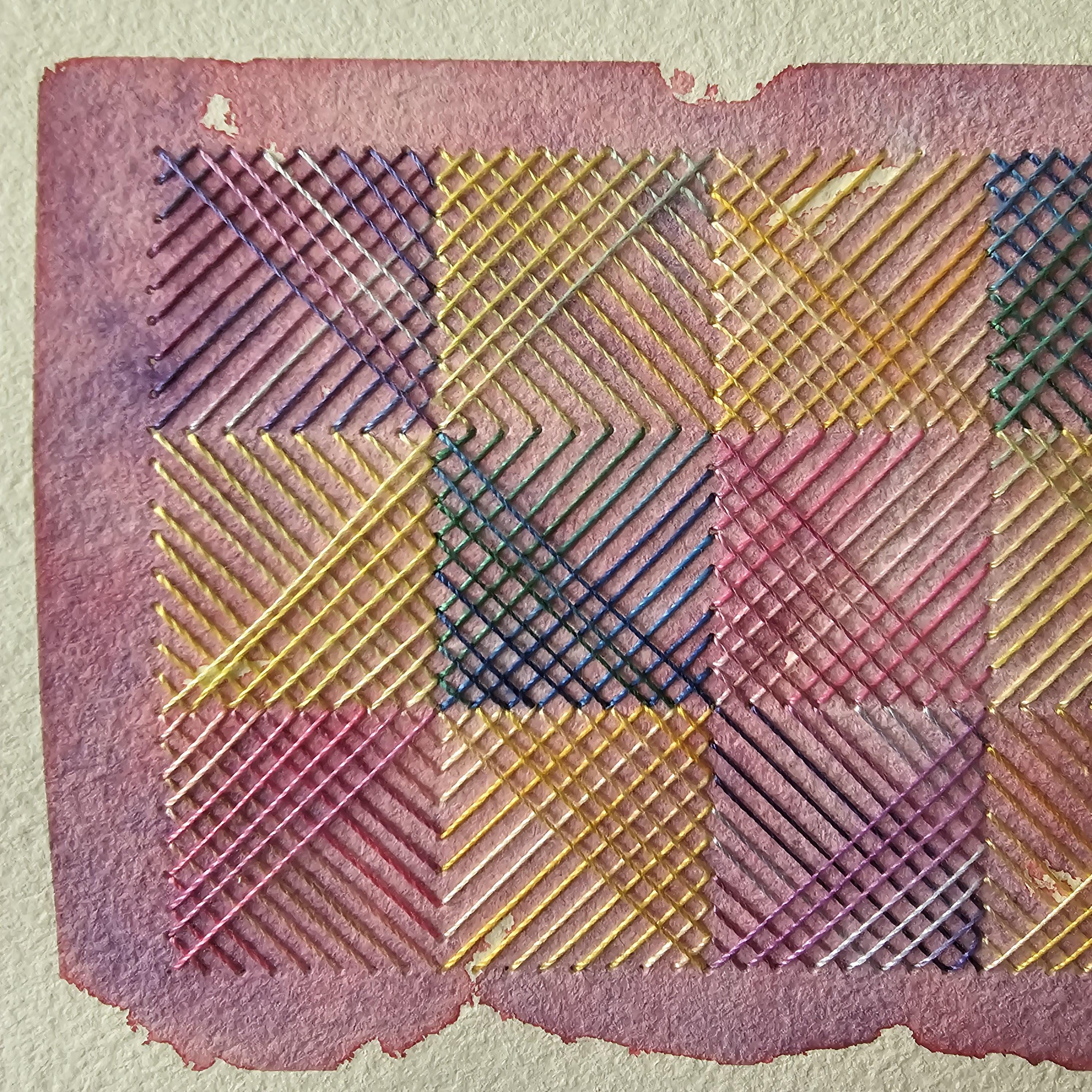 Original Stitched Embroided Paper Watercolor Abstract Small - Etsy