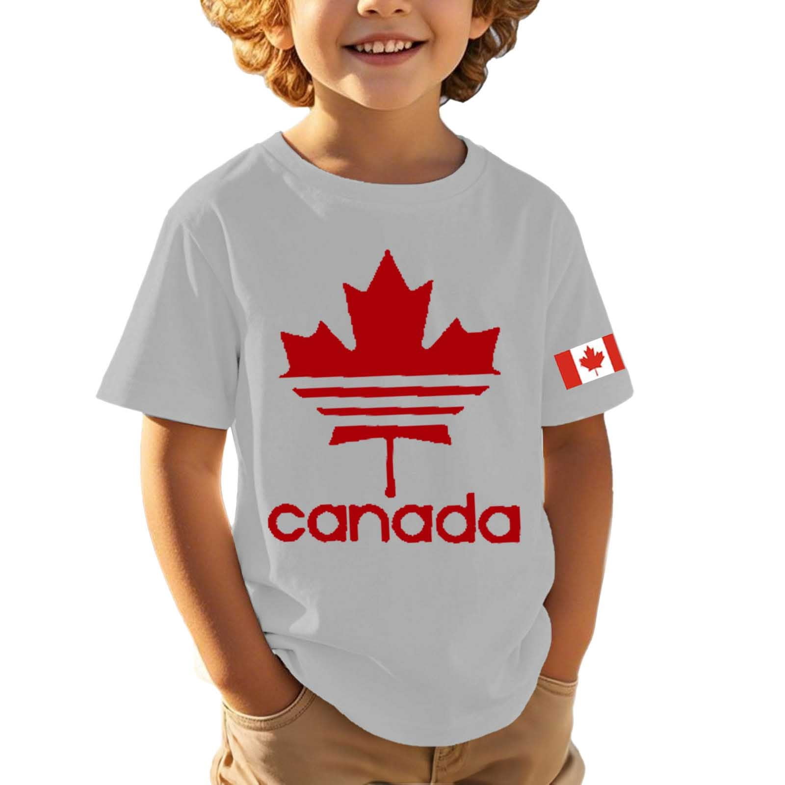 AWZXDE Boys Patriotic Graphic Tee With Embroidered Maple For Canadian ...