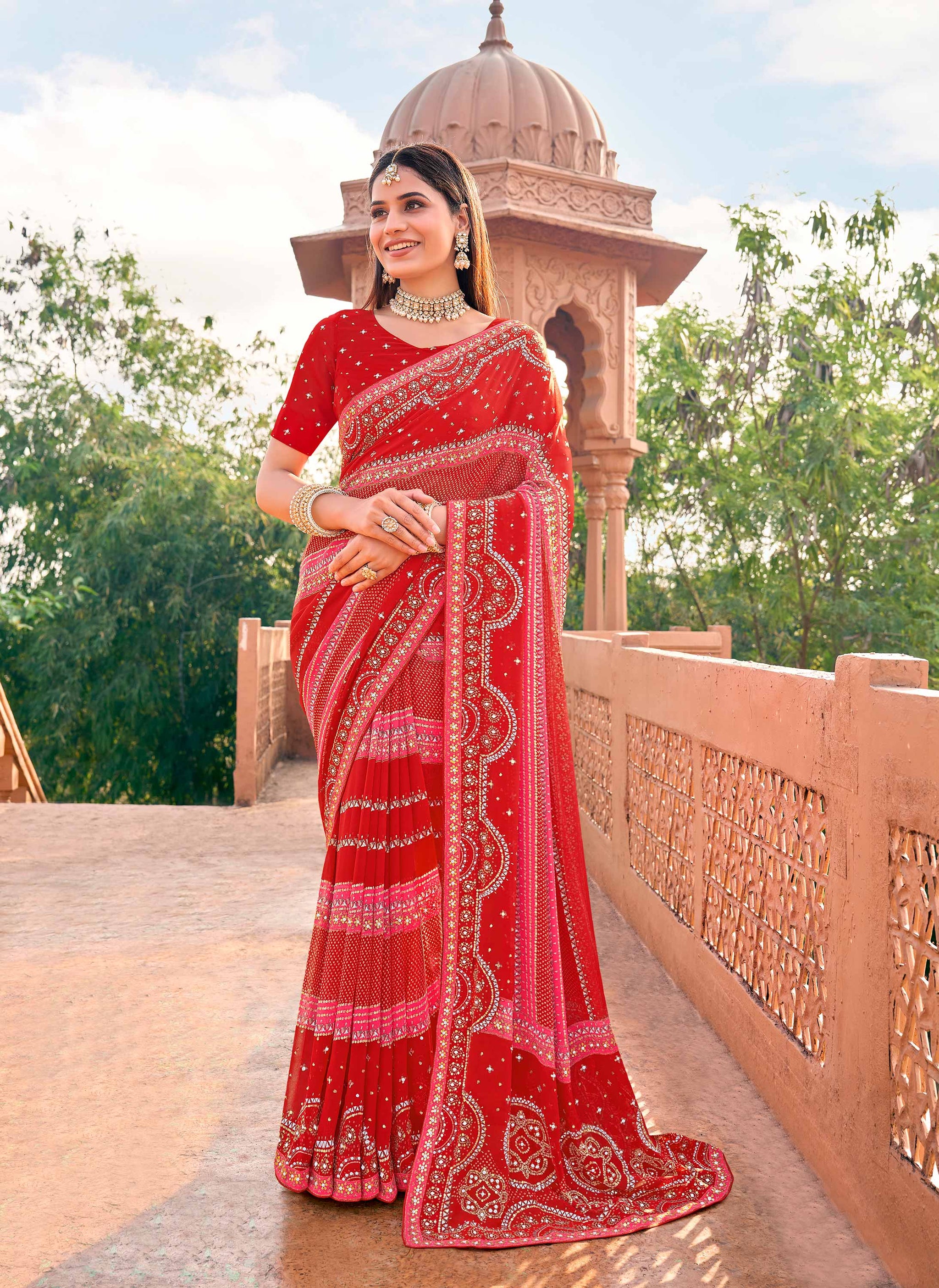Laxmipati Sur Taal Red Georgette Embroidered Saree