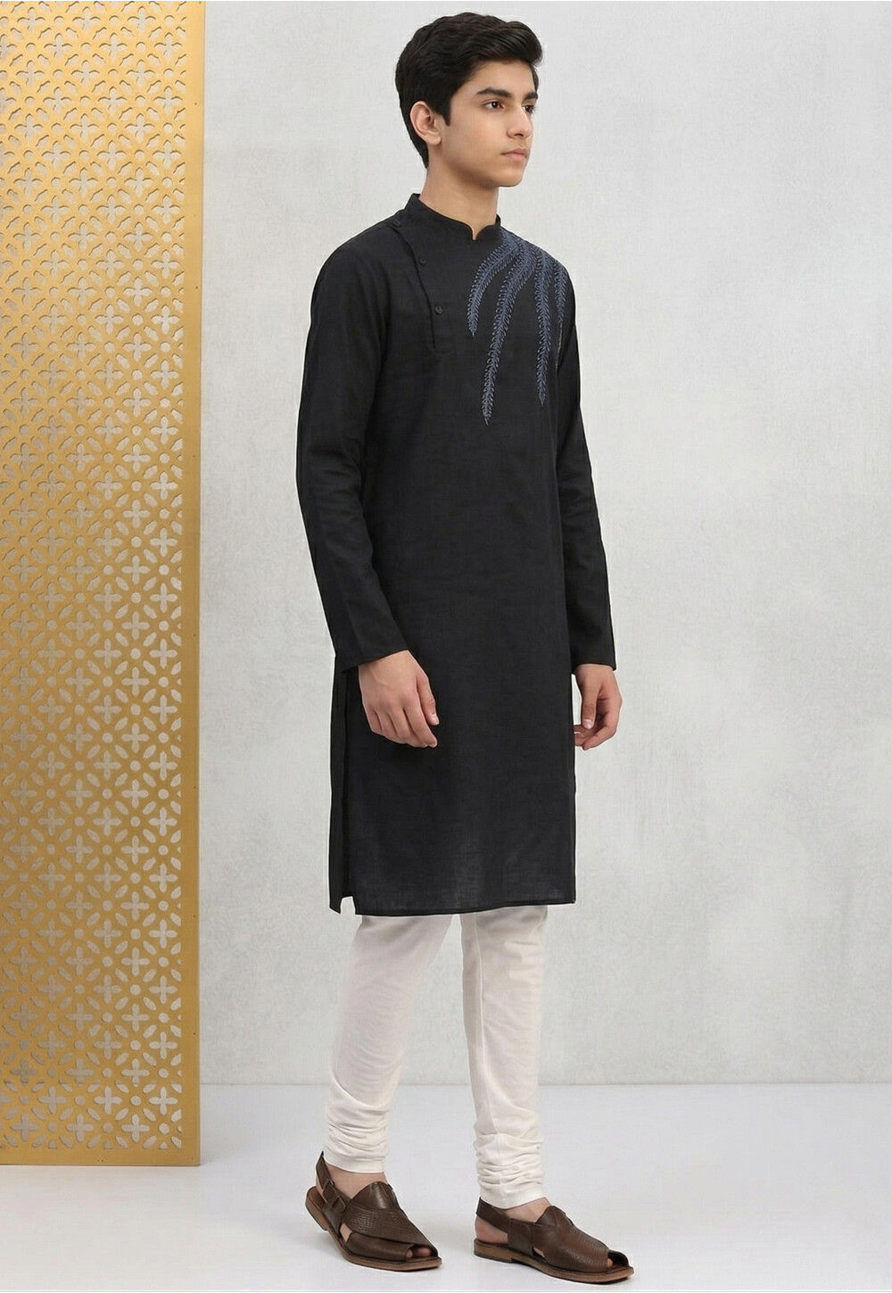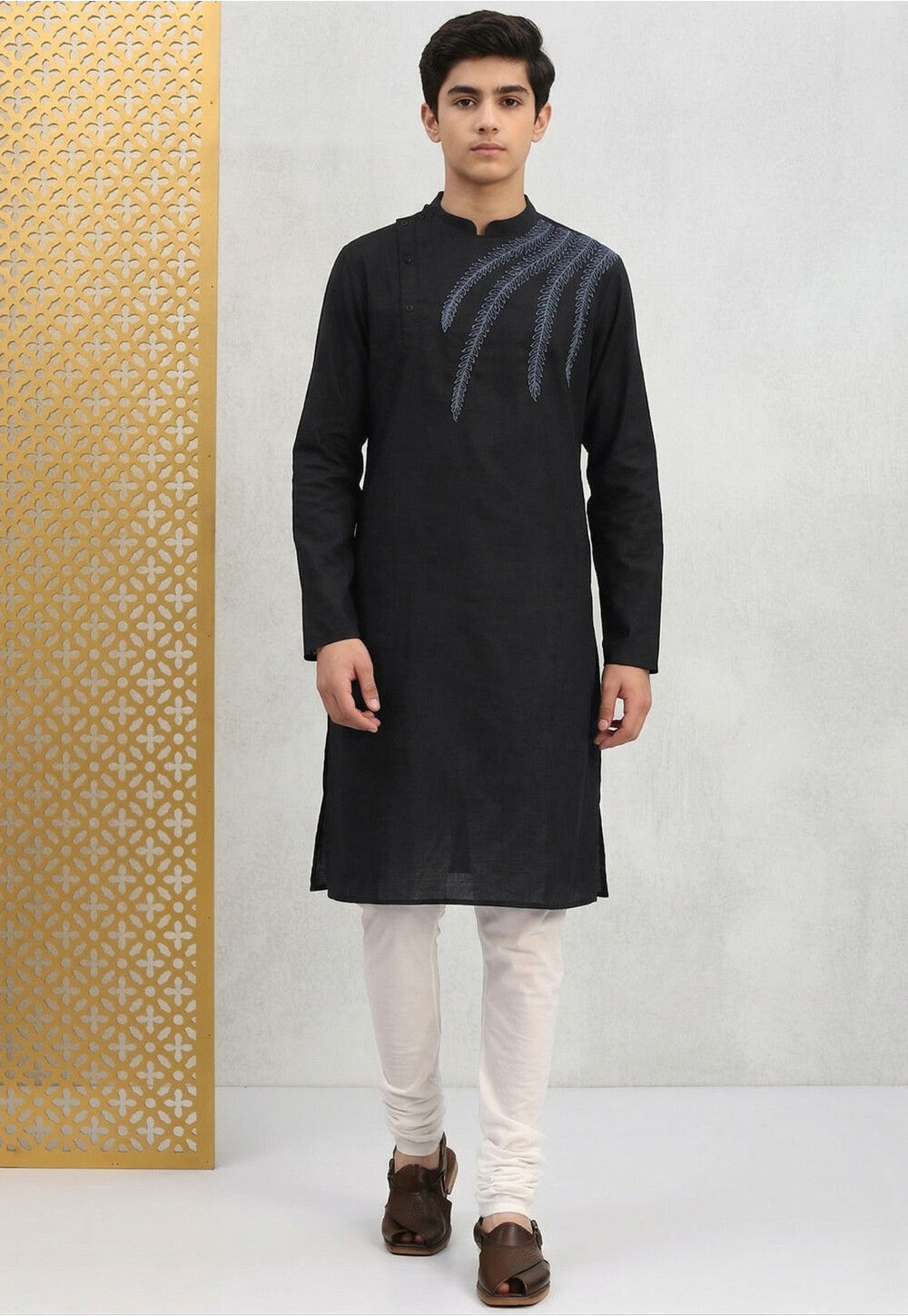 Buy Embroidered Cotton Kurta Set in Black Online : UGN250 - Utsav Fashion