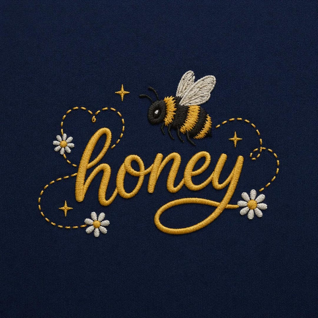 Bee Embroidery Design Honey Script Lettering Floral Insect Machine ...