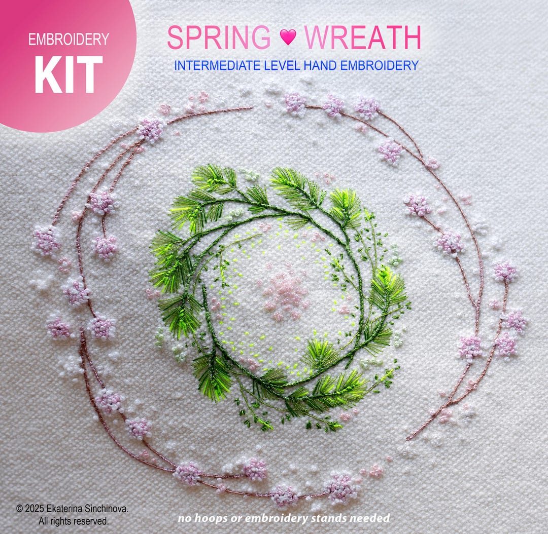 Hand Embroidery Kit "spring Wreath": Threads, Needles, Fabric With the ...