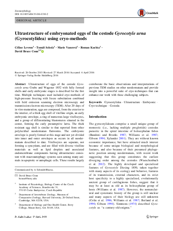 (PDF) Ultrastructure of embryonated eggs of the cestode Gyrocotyle urna ...