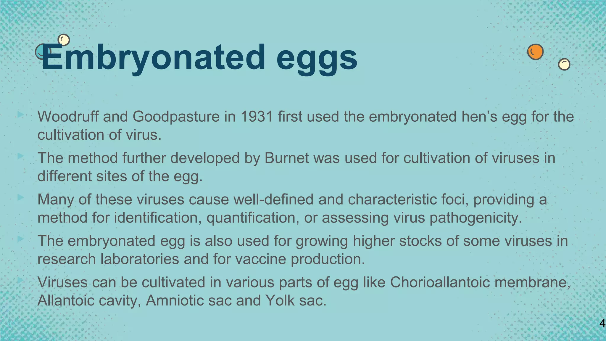 CULTIVATION OF VIRUS : Embryonated eggs | PPTX