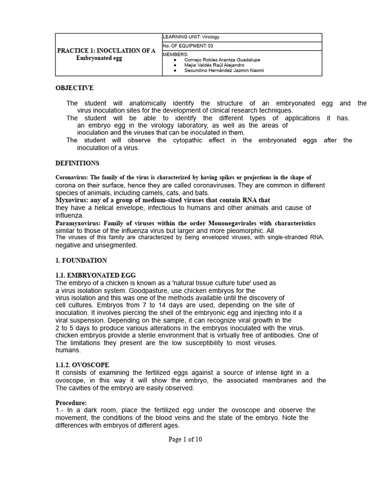 Virology: Embryonated Egg Inoculation Techniques | PDF | Cell (Biology ...
