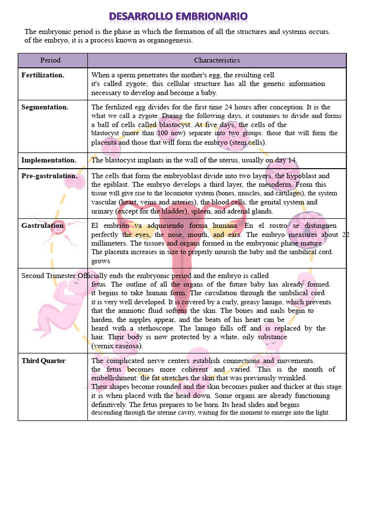 Etapas Del Desarrollo Embrionario Y Fetal Grafico