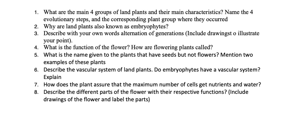 Solved 7. Why are land plants called embryophytes? 8. What | Chegg.com