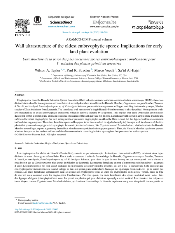 (PDF) ScienceDirect Wall ultrastructure of the oldest embryophytic ...