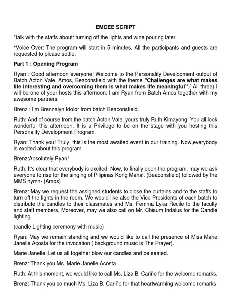 Emcee Script. 1 | PDF