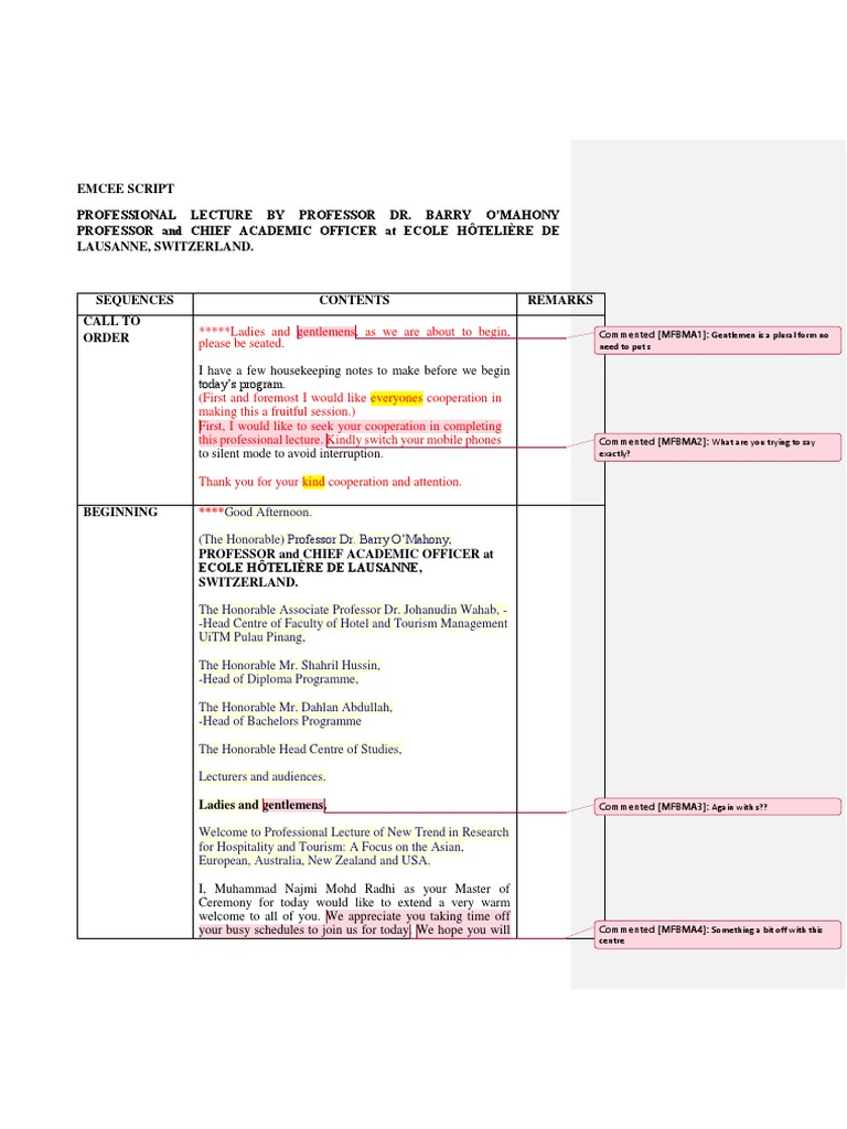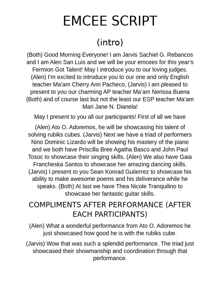 EMCEE SCRIPT | PDF