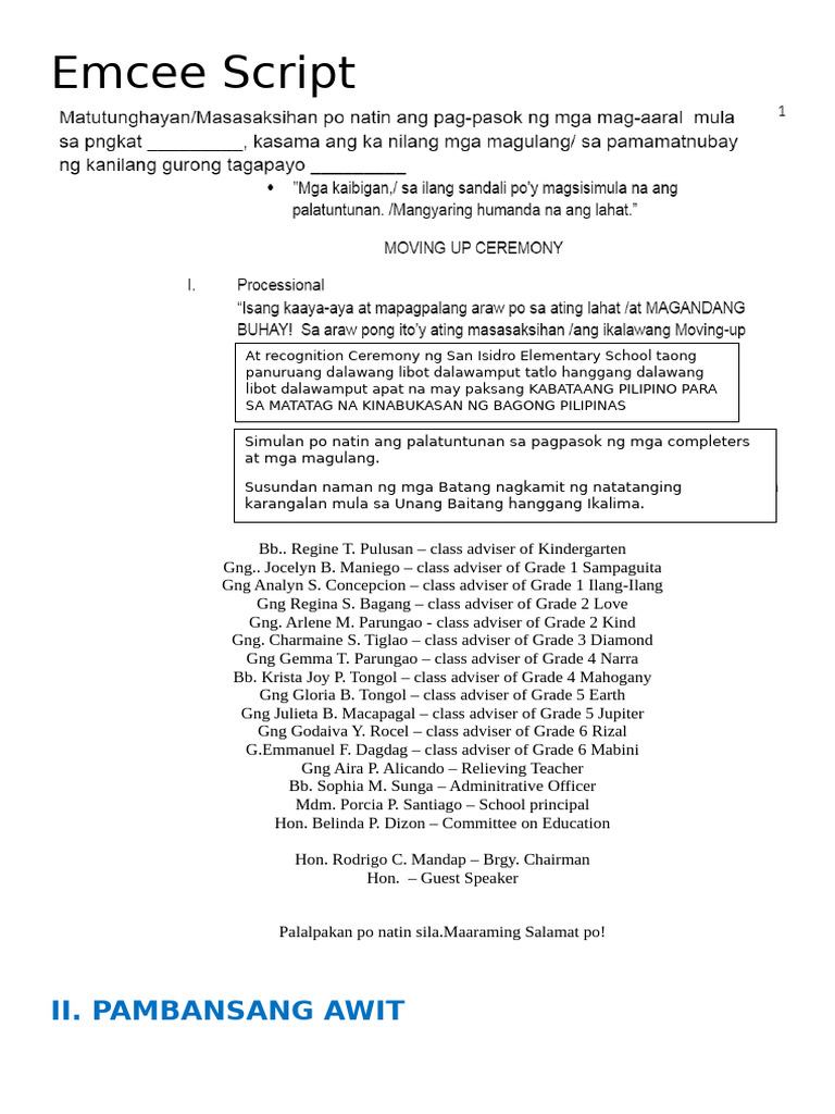 Final EMCEE SCRIPT FOR MOVING UP OR GRADUATION | PDF