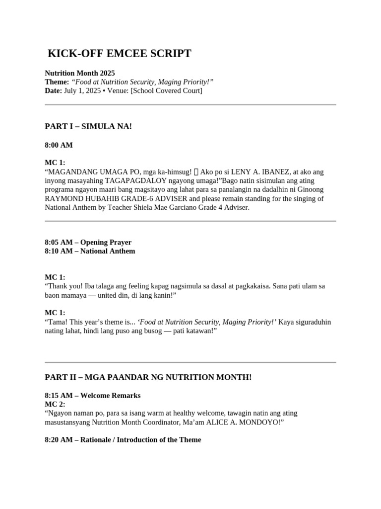 Emcee Script For 1 | PDF